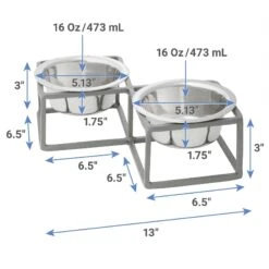 - Stainless-steel bowl set with raised stand elevates your dog’s drinking and eating height.